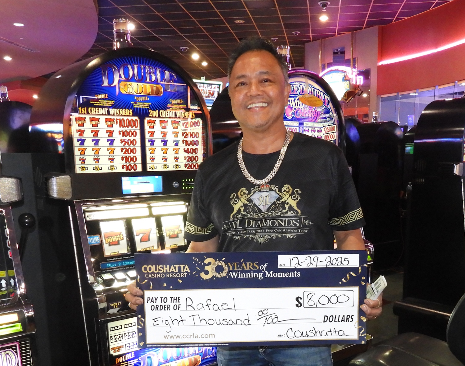 Congratulations to Rafael--on December 29, 2025 this lucky guest hit the jackpot while playing the Double Gold slot game and won $8,000!