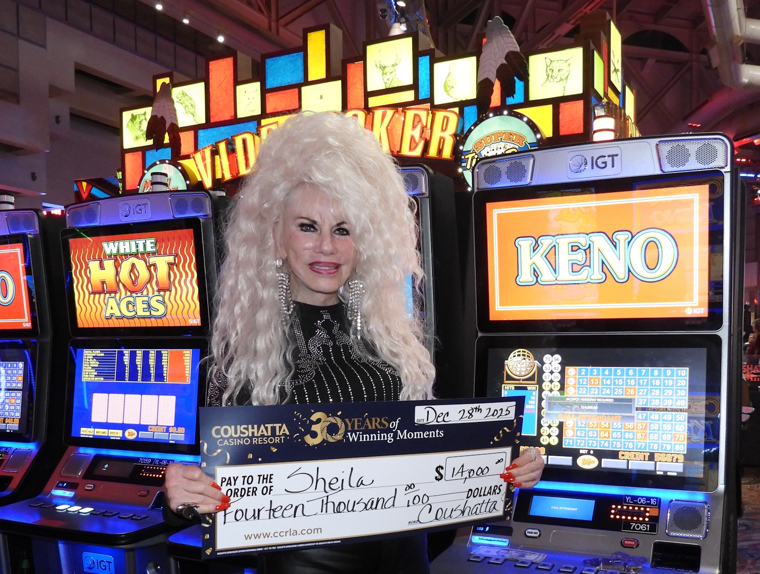 Congratulations to Sheila--on December 28, 2025 this lucky guest hit the jackpot while playing the Game King Keno game and won $14,000!