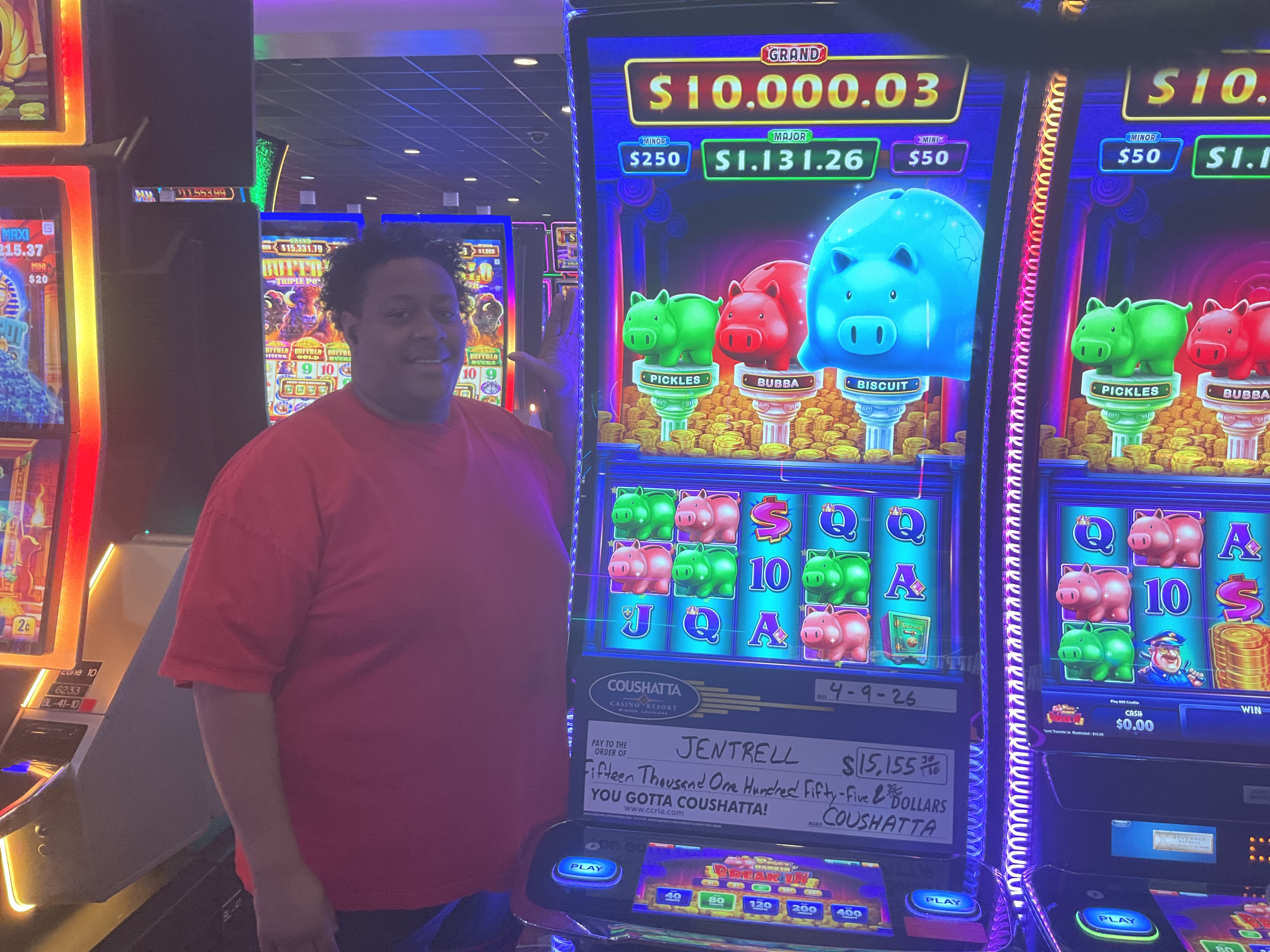 Congratulations to Jentrell--on April 9, 2026 this lucky guest hit the jackpot while playing the Piggy Bank'n Break'n slot game and won $15,155!