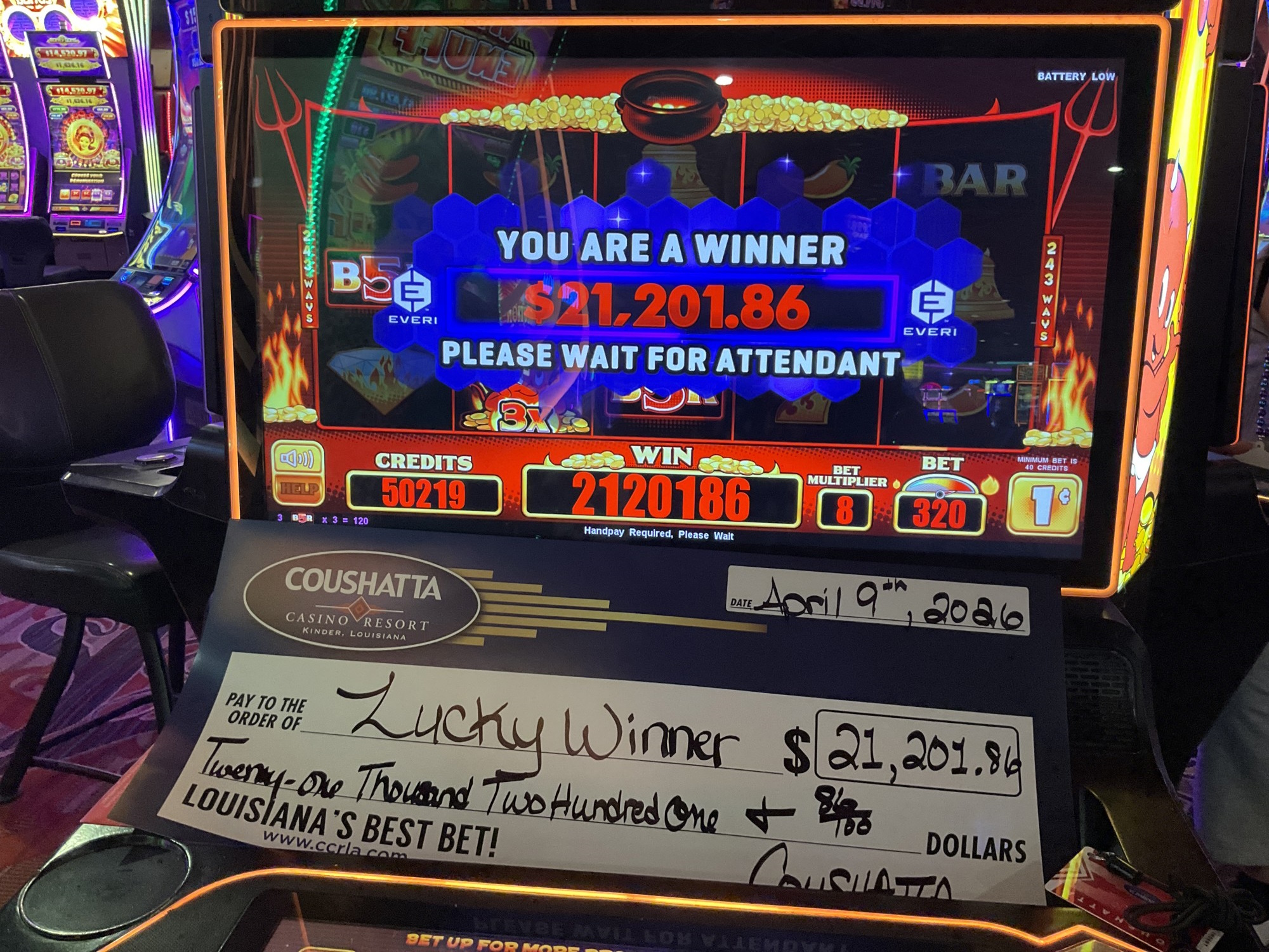 Congratulations to a Lucky Winner--on April 6, 2026 this guest hit the jackpot while playing the (machine #6407) slot game and won $10,700!