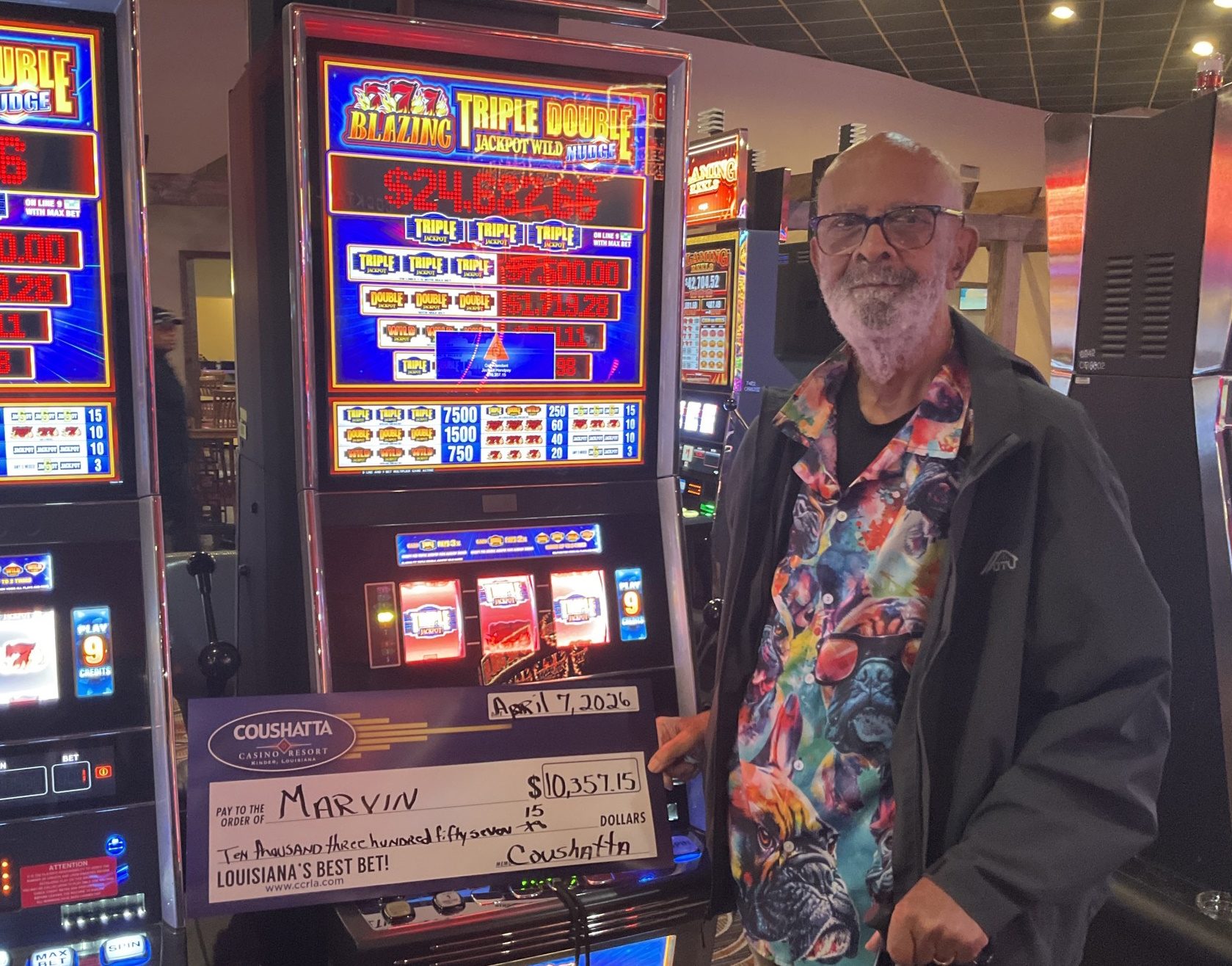 Congratulations to Marvin--on April 7, 2026 this lucky guest hit the jackpot while playing the Blazing Triple Double Jackpot Wild slot game and won $10,357!