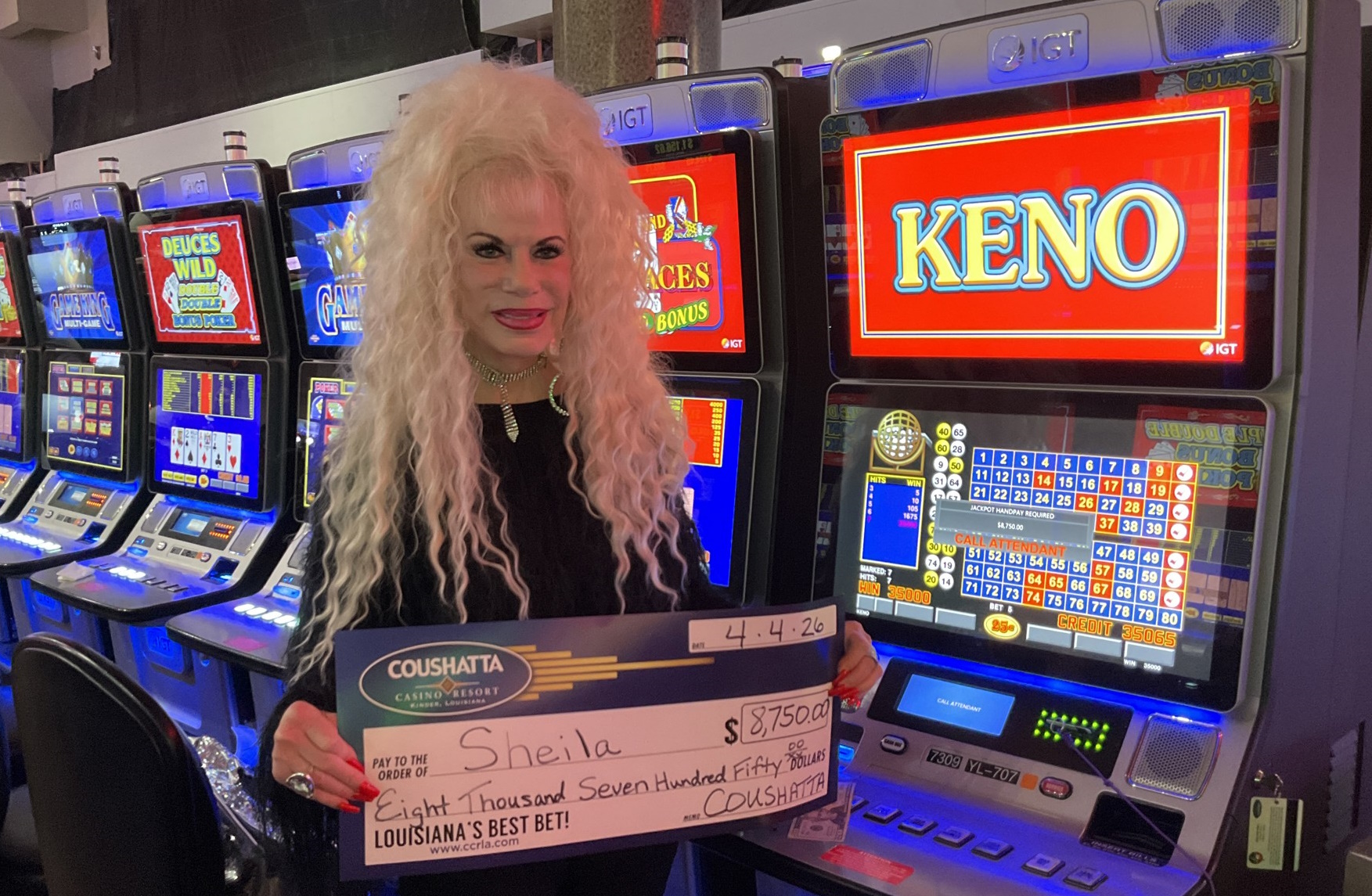 Congratulations to Sheila--on April 4, 2026 this lucky guest hit the jackpot while playing the Game King Keno game and won $8,750!