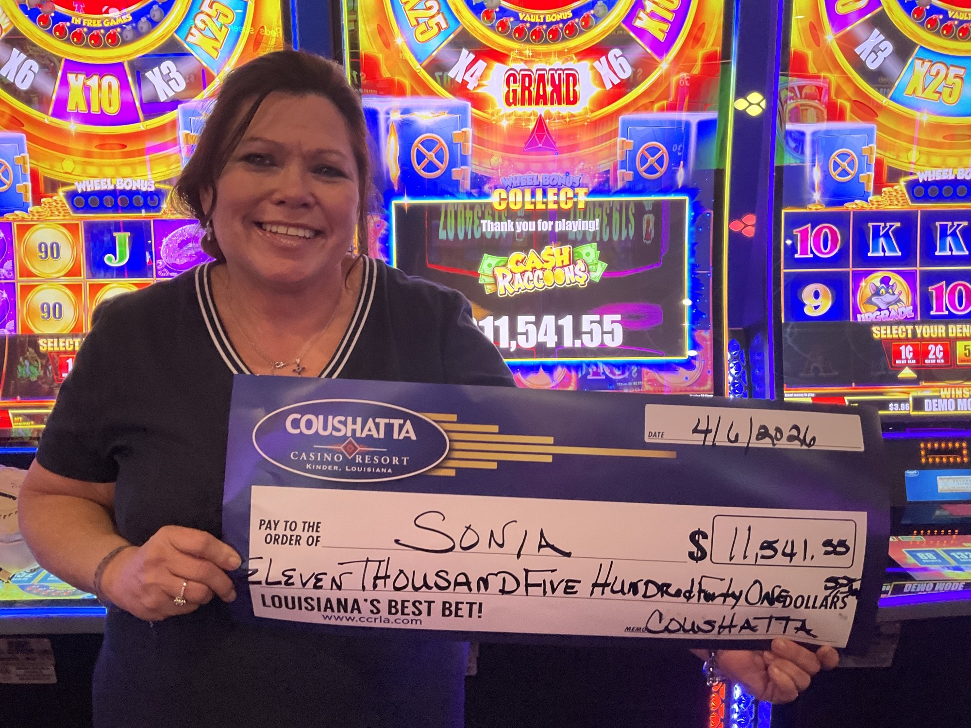 Congratulations to Sonia--on April 6, 2026 this lucky guest hit the jackpot while playing the Cash Raccoons slot game and won $11,542!